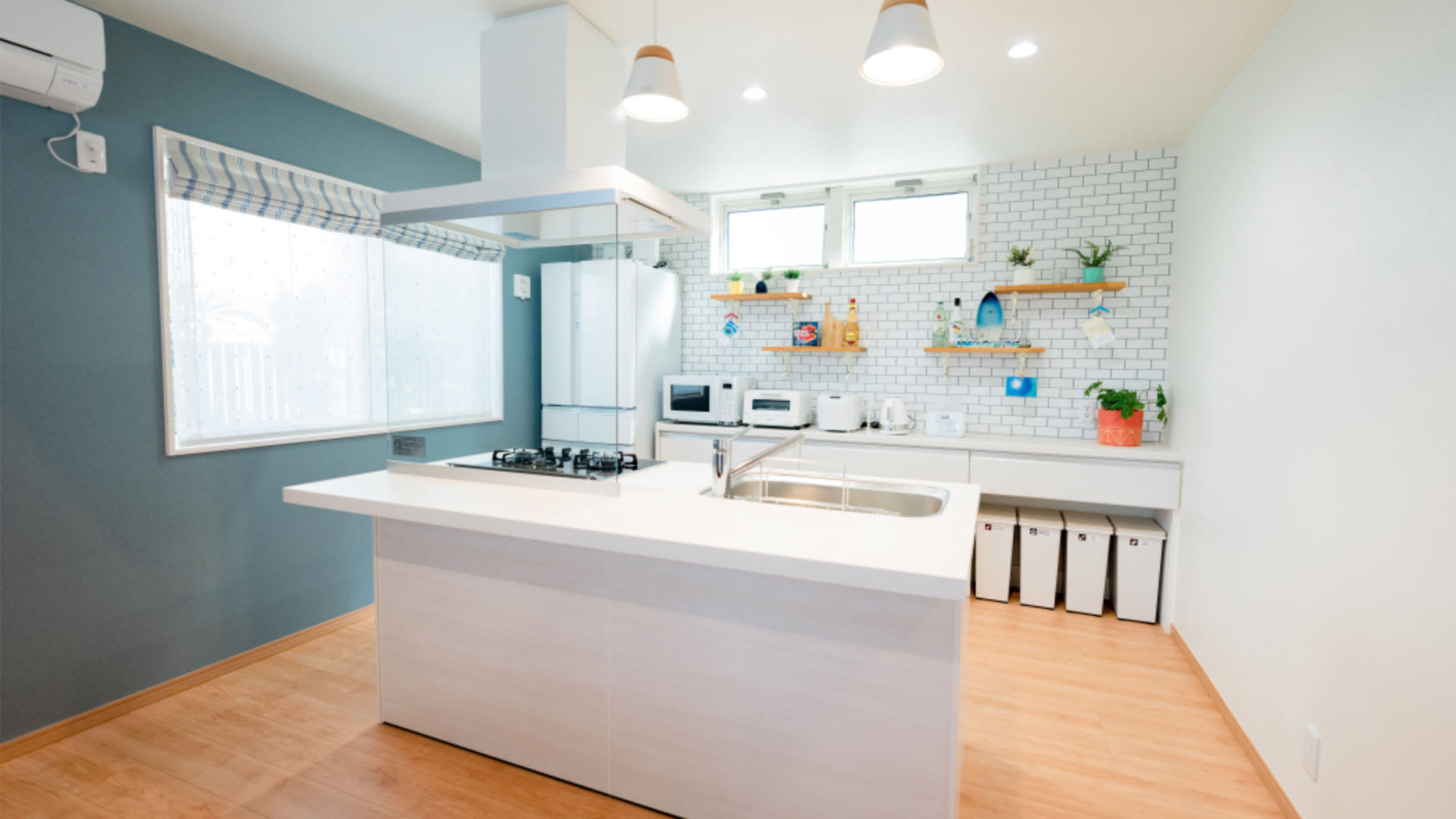 「K’s Villa Miyakojima」は2021年にオープンした、おしゃれなヴィラです。1LDKの平屋でコンパクトながら快適さを重視して設計されており、生活家電やアメニティが揃っているので、長期滞在にも最適です。